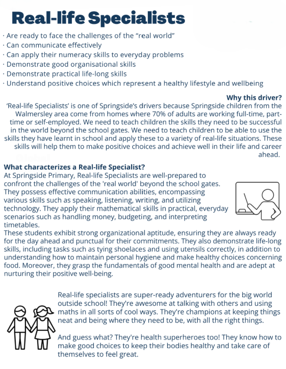 These drivers have helped us to decide how to develop our curriculum and they have helped us decide what we need to teach and when.